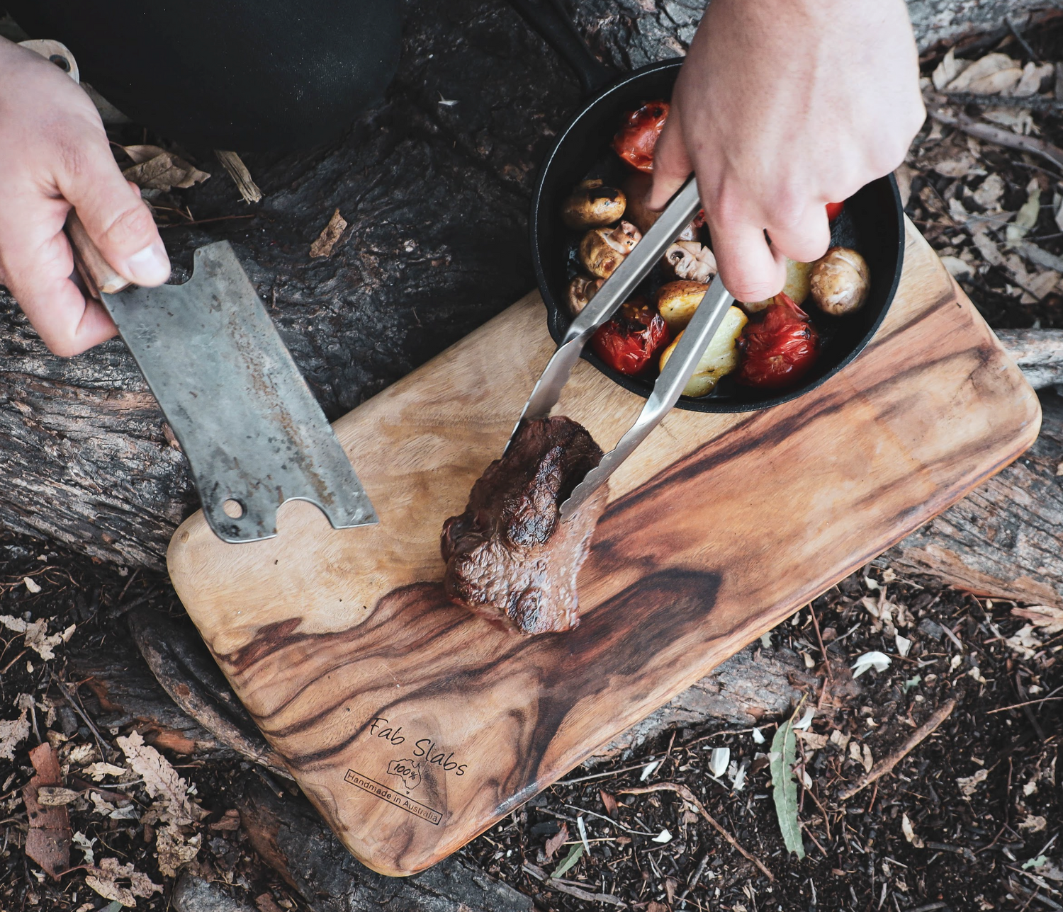 In addition to their exceptional quality, Fab Slabs is committed to environmentally friendly production of their kitchenware. They participate in planting and caring for native trees and other revegetation projects, and are active members of Land for Wildlife. Rather than using native trees for their cutting and chopping boards, they source salvaged Camphor Laurel logs, which are milled, dried, and turned into solid timber slabs that are both stylish and ethical. Camphor Laurels are considered an alien species in Australia, and there are programs in place to remove and replace them with native trees. By using salvaged materials, Fab Slabs prevents these logs from being wasted.